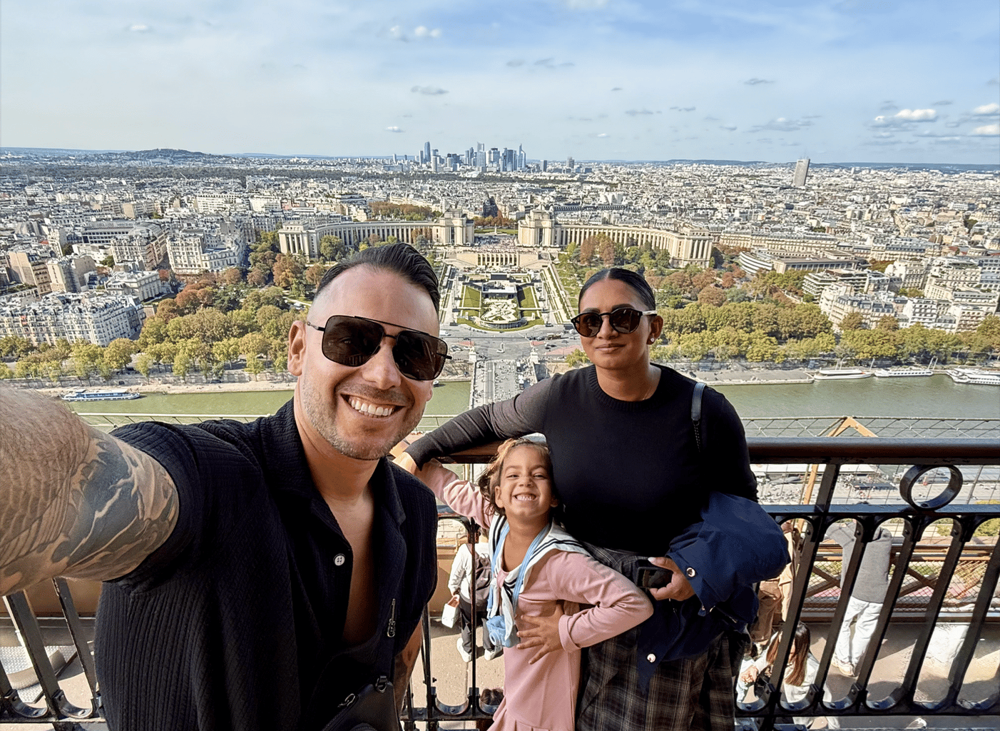 Anthony with his wife, Hevanya, and daughter, Zoë, during their stop in Paris.